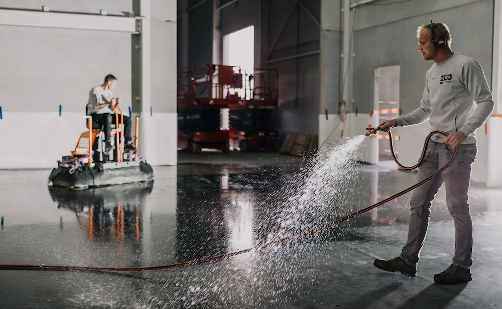 Door middel van een intensieve en zorgvuldige Beton+ behandeling verandert ICOfloor een gewone betonvloer in een stofvrije, sterke en onderhoudsvriendelijke betonvloer.
